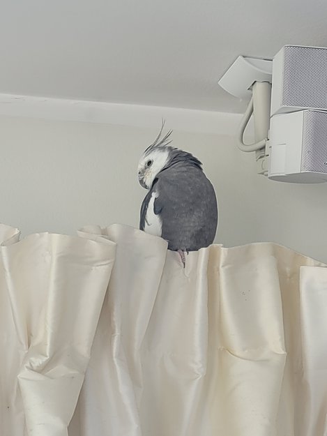 Landet på plattingen hos oss. Virker veldig tam og i god form. Drikke og spiser solsikkefrø og er uten synlige skader.