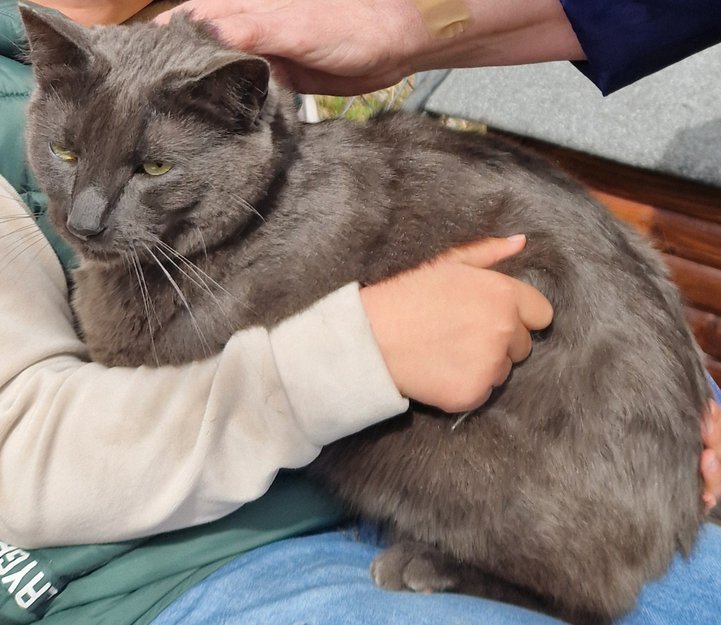 Katten kom sammen med broren sin i bil med eier fra Tjøme. Omplassering grunnet at eier flytter i leilighet. Kattene har vært "utekatter" kommet til opprinnelig eier for kos og mat. 4 år gamle.