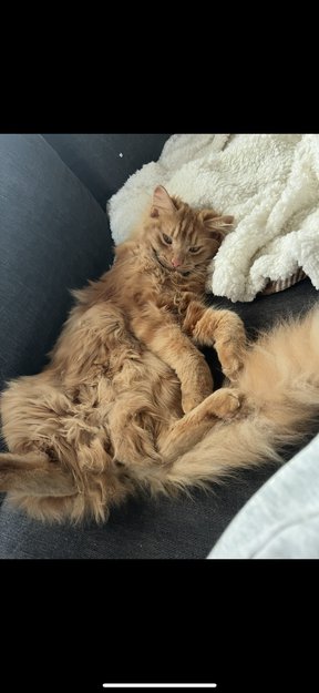 Lang håret oransje katt. Veldig kosete og veldig forsiktig
