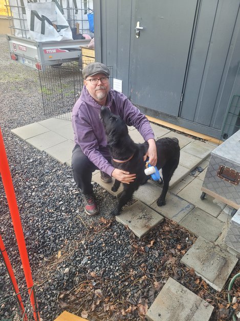 Hun kom bort til mannen min når han var på tur med vår hund. Hun ble med hjem. Nå prøver vi veterinær for å skanne en evt id. Men i tilfelle hun ikke har chip legger vi ut info her.