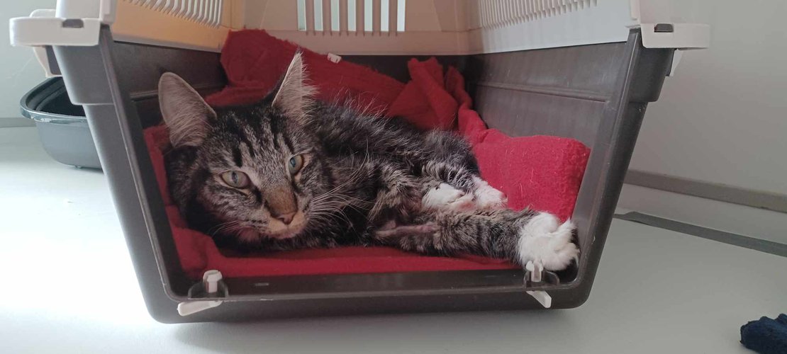 Katten ble funnet forkommen og gjemte seg under en platting.