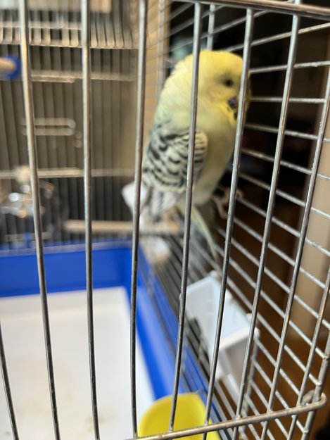 Gul, hvit, blå,grå fugl funnet i Drammen