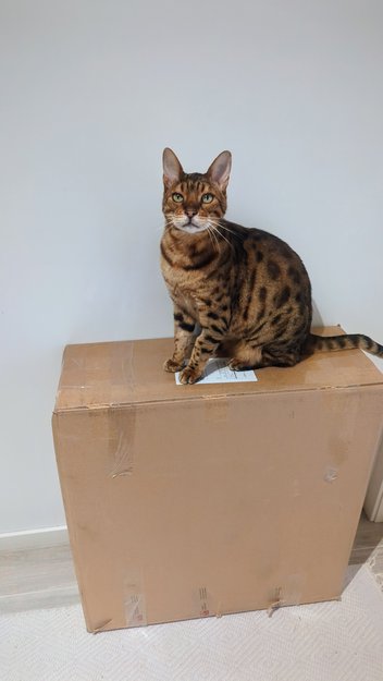 Pusegutt er en stor katt og litt reservert mot fremmede. Han er chipet og merket med ID med grønn skrift i øret