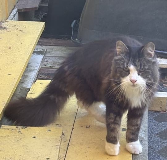 Svært kontaktsøkende pusekatt savner hjemmet sitt. Katten går daglig utenfor hos mine foreldre i Lyngfaret.