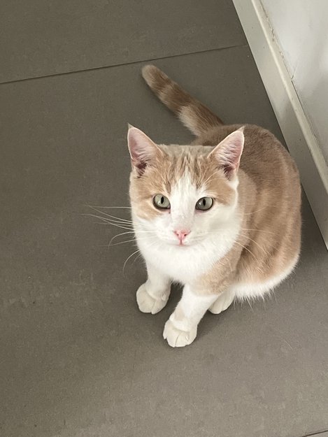 Han falt ned fra balkongen og løp ut fra bakgården vår. Han er for tiden en inne-katt, og er ikke kjent i nabolaget.