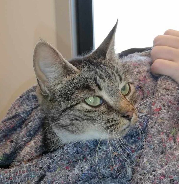 Hun er hovedsakelig brunstripete, men hvit på haken og brystet. Hun er redd for fremmede, men snill med dem hun føler seg trygg på.