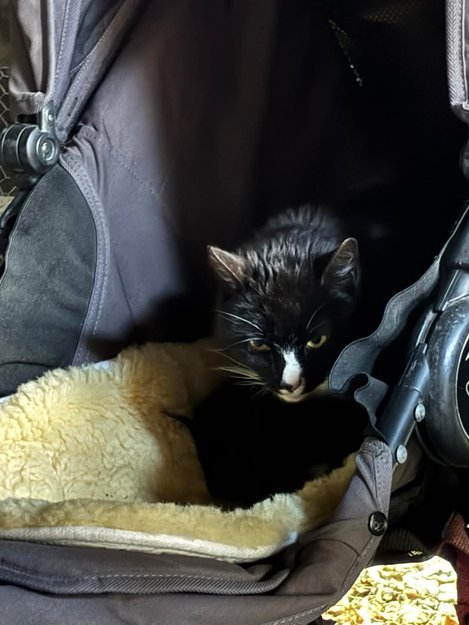 Katten fødte 6 små nøster i en av barnevognene i helgen. De har aldri sett katten før. Kanskje kommet med en bil?