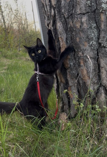 Hun er en liten svart katt med gule øyner. , mellom lange hår og lang haleSterilisert og chippet. Også behandlet med flåttmiddel.