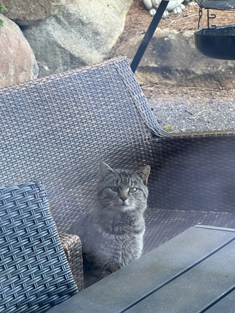 Den begynte å spasere litt forbi våres bosted for en måned siden sirka. Eg forstod raskt at den ikke gikk sin vei før den fikk i seg litt vann eller noe å bite i. Det er jo en vanlig ting å gjøre når man ser dyr ute som dukker opp hos deg å sitter såpass fint på terrassen, da får man lyst å gi litt. Først så var eg veldig sikker på at det var en huskatt, fordi den dukket opp her ei sjelden gang for litt mat, og det er derfor eg ikke har meldt ifra om dette tidligere. Om en katt går forbi å stopper for litt mat ei sjelden gang, så er det ingen grunn til å tro at den er savnet. Men nå har den begynt å komme hit ganske ofte plutselig, og eg ble mer og mer usikker på om det er en huskatt. Den kommer hit ofte nå, så da føler man nesten at det er en katt som ikke får mat andre steder🤷. Det var da eg bestemte meg for å gjerne legge ut ett innlegg.