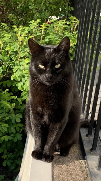 Helt sort, lita dame. Er litt sky men veldig søt og god når man blir kjent med henne. Prater mye innimellom.