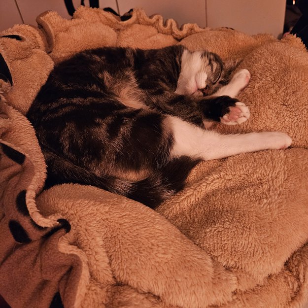 - Kvit på poter, under hake, på bryst og høyre del av "bart-området" under nesa