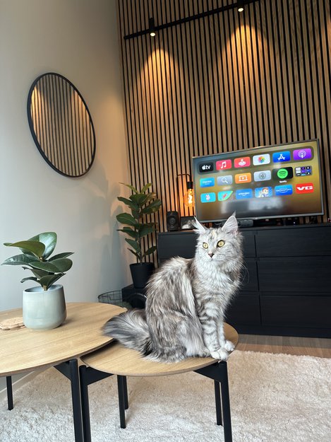 Hun er ikke en veldig stor katt enda da hun bare er 1 år. Hun er veldig pratsom og mjauer en del, spesielt nå når hun har løpertid.