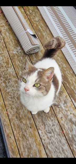 Observert som stresset og streifende rundt om i Skankegrenda (Opphaug, Ørland). Observert fra rundt februar 2025. Flere naboer i området har bemerket seg katten og ingen kjenner til den. Er veldig sulten og kontaktsøkende. Spiser søppel og fuglemat blant annet.