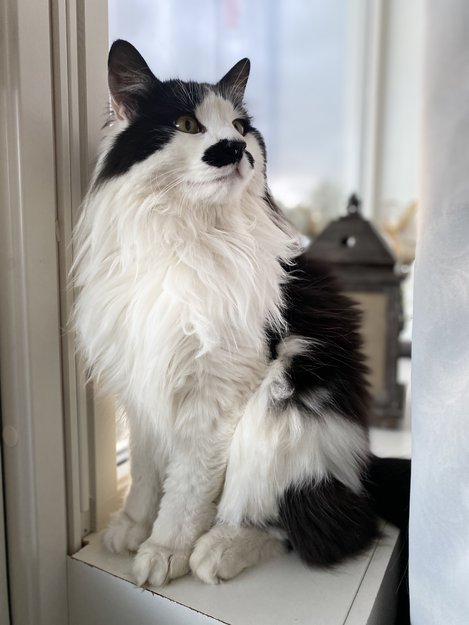 Sort bart, langhåret og pen i pelsen. Velstelt. (Var iallefall..)