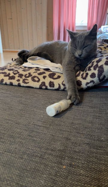 Vi hadde vinduet oppe på soverommet, så må hun ha falt/ hoppet ut. Hun liker å sitte i det vinduet å se på fugler. Vi tror hun har fått løpetid.