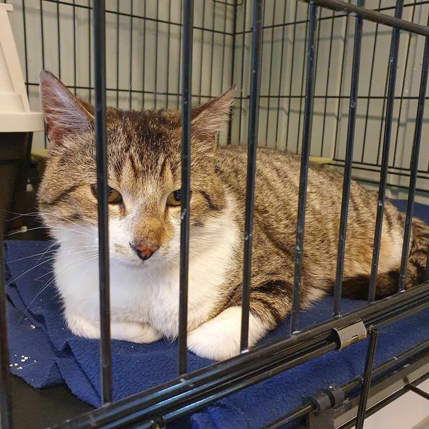 En av kattene våre har klart å komme seg ut av luftegården på Smådyrmottaket vårt i Ingebjørg Lykkens vei nr.1 på Gan.