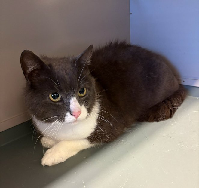 Grå og hvit hannkatt funnet i Hitra
