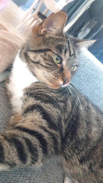 Innekatt som har tilgang til terrasse. i 2 etg. Han har trolig hoppet ned og blitt veldig skremt og stukket av. Natt til Torsdag 26.juni 2025. Han har Id.chip. men jeg passer på han for de som bor her så jeg vet ikke id.nummer.