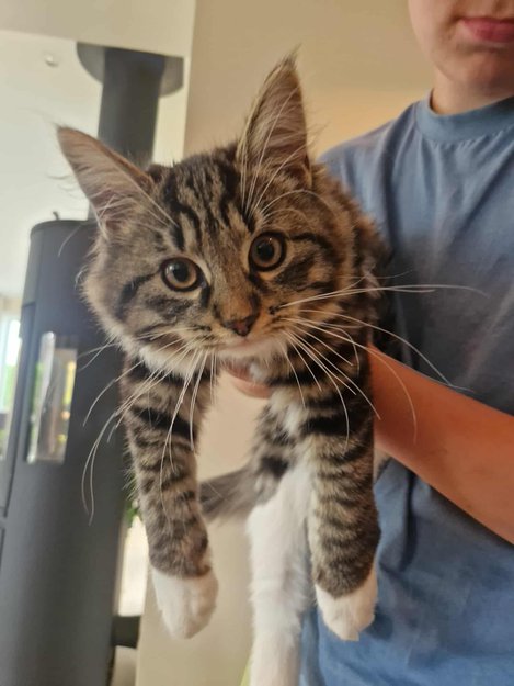 Liten kattunge på 3-4 mnd flyttet inn i hagen vår. Virker vant med mennesker og barn.