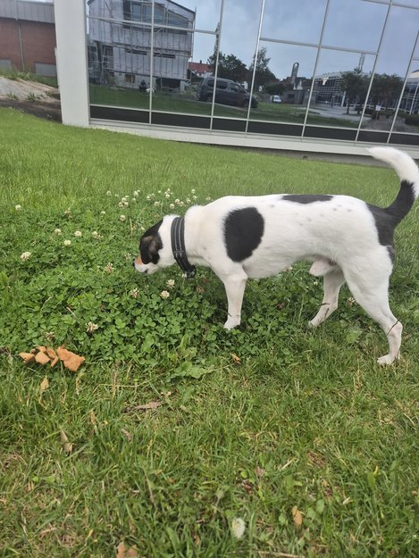 Hvit, brun svart hannhund funnet i Sandnes