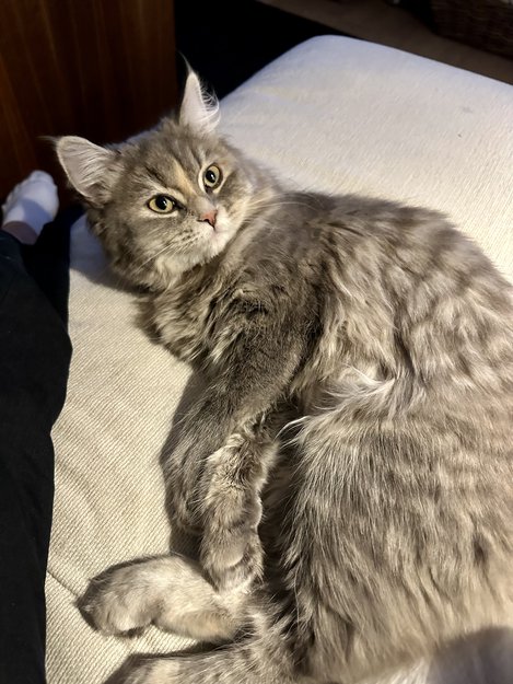 Forsvant fredag formiddag og ikke sett siden. Er 8 mnd og har ikke vært ute mer enn noen få timer av gangen. Alltid i nærheten av huset. Hadde på seg rosa halsbånd med bjelle.