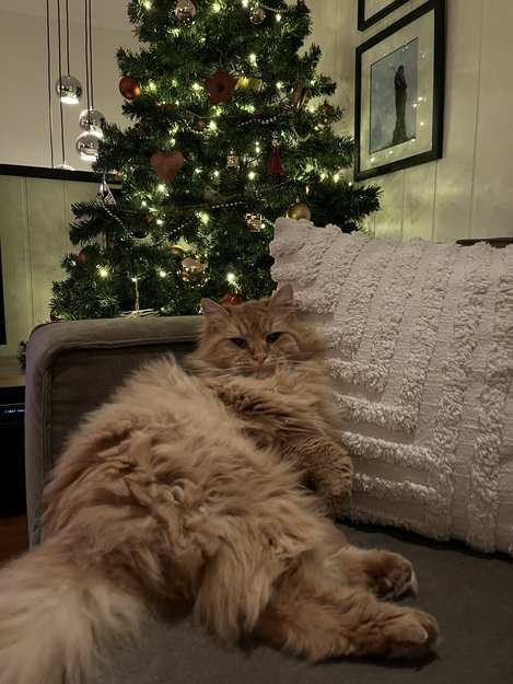 Langhåret, med kraftig hale. Orange , litt hvitt på mage