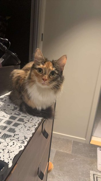 Dette er VELDIG uvanlig, hun er hjemom med jevne mellomrom i løpet av dagen når hun er ute. Hun er meget skvetten. Hun er tricolorfarget, ikke så stor, med en kraftig, buskete hale. Hun er ikke chippet. (Det trenger jeg ingen kommentarer på. 💖) Vi har lett og ropt, hun pleier å komme når vi rister en leke hun har, men ikke nå. Er redd hun er påkjørt, men har ikke sett henne i grøftene her. Har noen sett henne, tro? Ps. Vi har to tricolorfargede katter, den ene er stor og kraftig og gulere i fargen enn den lille. Den store er ikke savnet, om den skulle bli sett.