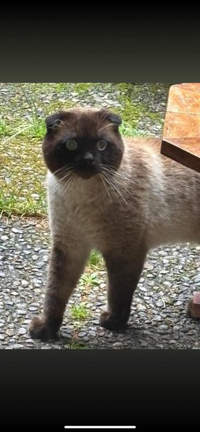 Er det noen som savner en siameser-katt med flate ører (scottish fold)? Det er andre kvelden jeg ser den vandre i Berglyveien, kjemperedd når man prøver å kommunisere med den. Mistenker at den er bortkommen mtp lynnet den har. Eventuelt nyinflyttet og utforsker?
