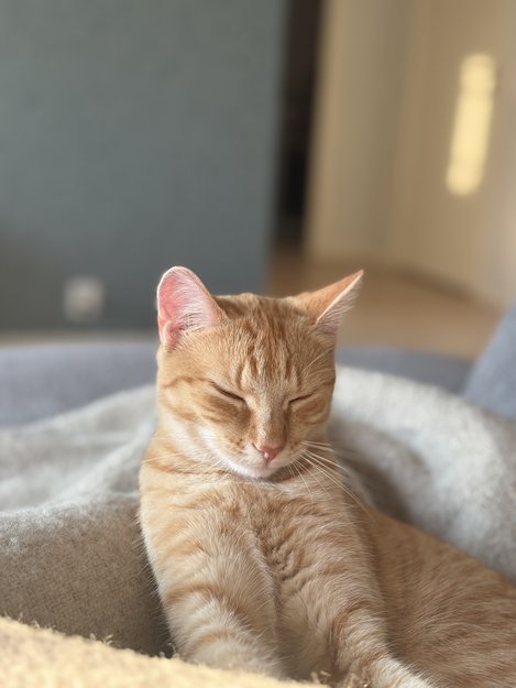 Hun er en ung katt på 10 mnd, og er derfor litt liten av seg. Hun er oransjstripete med litt mørkere striper i ansiktet og en lysere hake. Oransje øyne.