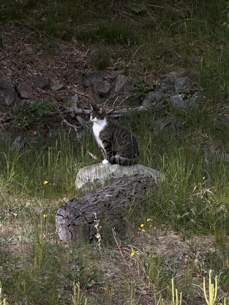 henne er hvit på hele underkroppen. Fra hake til hale. Oppå kroppen er henne stripete grå og hvit dette mønsteret trekker seg ned på beina. (makrell mønstret). Henne er en veldig snill og kosete katt, ikke noe skummel å løfte opp.