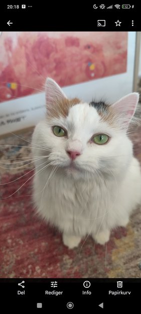 Indi er en hvit liten innekatt på ca 3-4 kg med sorte/ brune flekker og grønne øyne. Hun er en redd liten jente som er tryggest hjemme, som kanskje ble skadet og/ eller skremt i fallet gjemt seg 🥺. Hun falt fra 3. etasje, høyde ca 5-6 meter. Dersom noen finner henne anbefaler jeg på det varmeste at man kontakter meg umiddelbart fremfor å ta sjansen på å nærme seg henne og risikere at hun skremmes vekk på nytt. Alle tips tas imot med stor takk ❤️