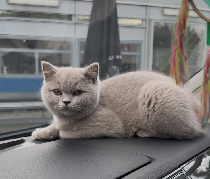 Hun er en 6 måneder gammel tispe, veldig øm og vennlig, lys grå med brune øyne. Hun har en chip.