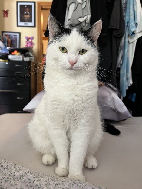 Rampete men koste hu har rosa nese grønn/gul øyne hu er hvit med svart hale svart ører å rosa poter biter og klorer ikke med mindre du klapper hu på magen veldig sassy hun er snart 4 år