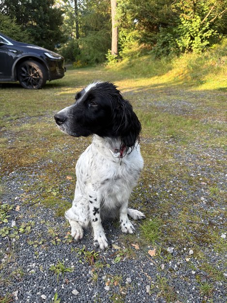 Dukket plutselig opp hos oss, vi er på hyttetur her. Hun er fortrolig, men litt stresset.
