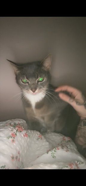 Hun har et lite fjes, er grå på overkroppen med beige tegninger over øynene, samt ned over hals og mage til og med innsiden av bakken er beige. Med noen hvite tegninger på midten av brystet og magen. Hun er også litt hvit rett rundt nesen.