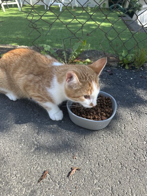 Kattunge funnet utendørs i Alf Bondes veg, Ytre Arna. Mjauer og mjauer. Tydelig at den har eller har hatt et hjem.