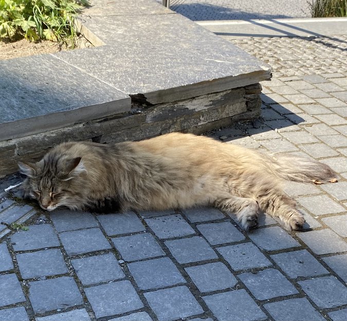 Denne katten lå og sov i Bjørvika i dag. Et uvanlig syn der, og den var ruskete i pelsen så lurer på om noen savner den. Noen turister kom bort og ville kose med den, da smatt den unna før jeg fikk sjekket den nærmere. Ta kontakt om du savner denne katten. Jeg har to bilder, får bare lagt ut ett her.