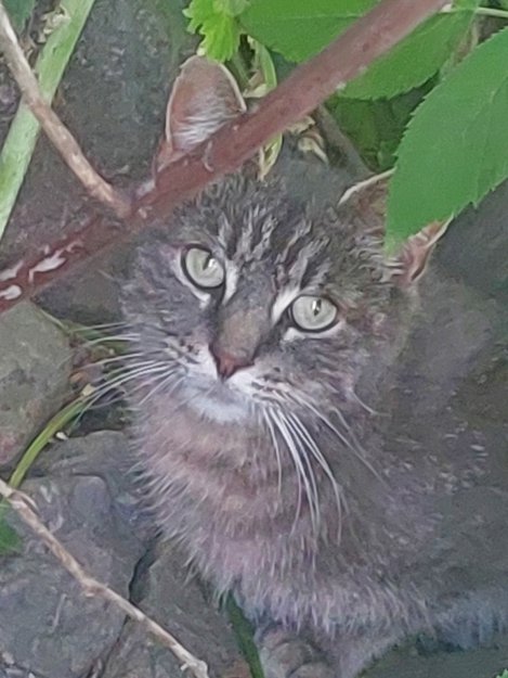 Kattemor med 4 kattunger har slått seg ned bak vedboden vår, kattemor er sky og freser når vi nærmer oss. Regner med at ungene er født ute og at kattemor har flyttet dem til vår hage i slutten av forrige uke. Vi har sett kattemoren i noen dager, men oppdaget kattungene først i dag.