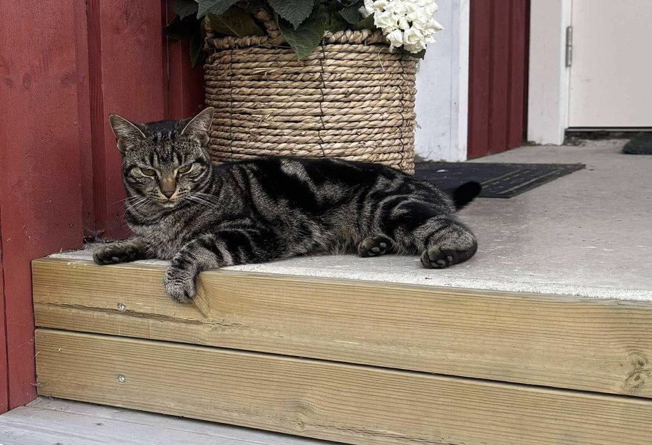 Er utekatt, men stort sett rundt hjemmet. Har vært borte i tre dager nå, noe som aldri har skjedd før. Vi har leita i garasjer, boder osv i området, men finner henne ikke.