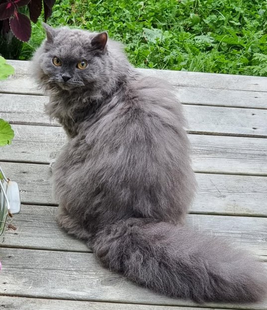 Katten ble sluppet ut på morgenen fredag 18. Juli. Ble sist oppservert av nabo fredag kveld ved bakkemo krysset, da 2 turister i bobil holdt på med katten.