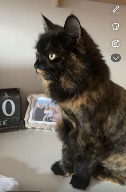 Er egentlig langhåret og tykk i pelsen men fikk løveklipp i mai. Hun er skipskatt med store poter. Er som regel sky og redd andre. Liker kun kos fra nære og kjente personer.