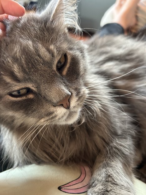 Tigerstripet grå, markante striper i ansiktet. Svakere på kroppen. En stor lys flekk på en side av kroppen