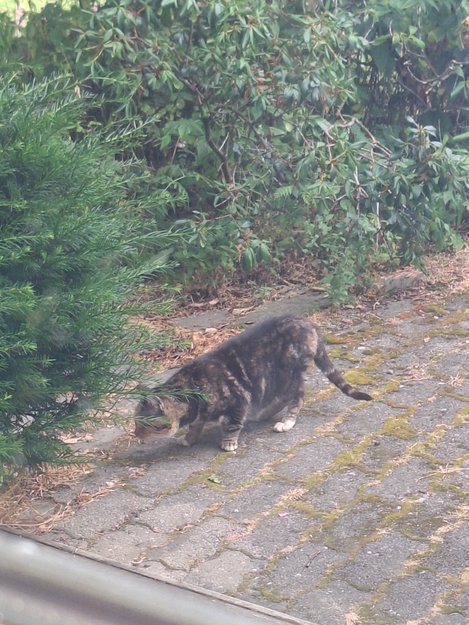 Jeg så katten gikk på platten atmed huset vårt helt rolig. Hun gikk dermed nedom huset vårt, og gjemte seg.