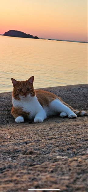 Oransjebrun, med ett hvitt og ett oransje forben. Tydelig brunstripet hale, 10 måneder gammel. Svært snill, sosial og kontaktsøkende.