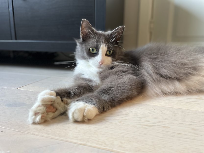 Kjennetegn er at hun går med halen på ryggen og at hun har en ekstra
