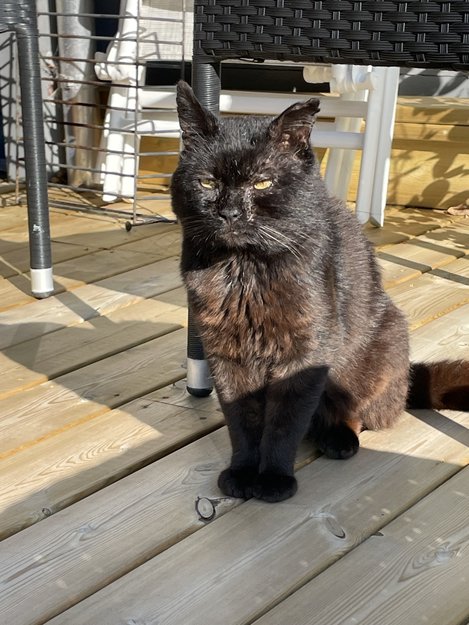 Kan dette være din fine pus? Sort/brun pels, gule øyne. Har sett den flere ganger i Godalstunet, den bærer preg av å ha vært ute lenge 😿