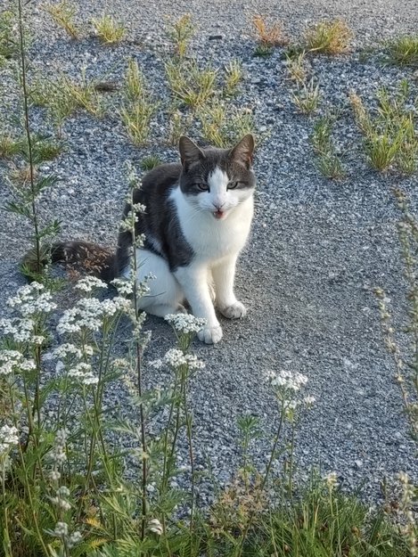 Ung hunnkatt veldig mjauet og var veldig sulten. Ekstremt kontaktsøkende og kjælen