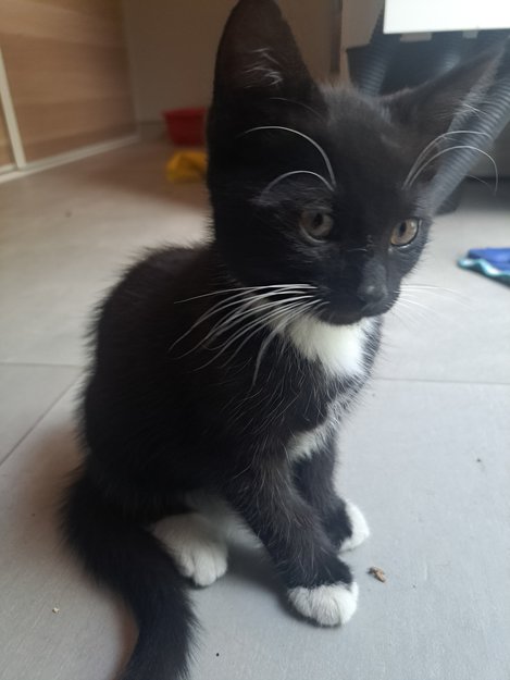 To av kattungene til kattemor begge svart og hvit. En gutt og en jente. Holdt på å springe og leke mens barn koste med dem . Med dører opp og igjen plutselig var de borte. Forsvant om kveld 29 juli. Kun 10 uker gamle. Hannkatt funnet.