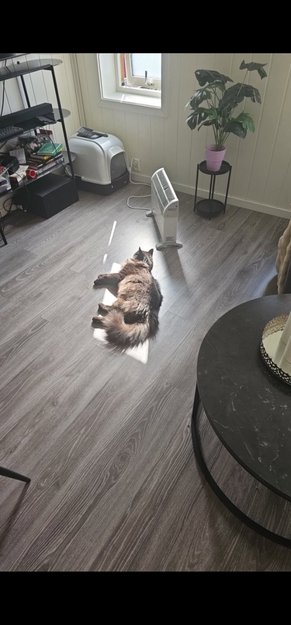 Svart pels med brun skjær, gule øyne. Veldig sky folk. Reagerer på navnet Tåke.