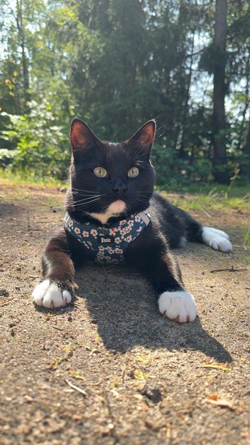 Hei! Ser ut til at min innekatt med navnet Berry har klart å snike seg ut. Han er sort med hvite detaljer, svært snill og kosete. Han er 3 år, kastrert og chipet!